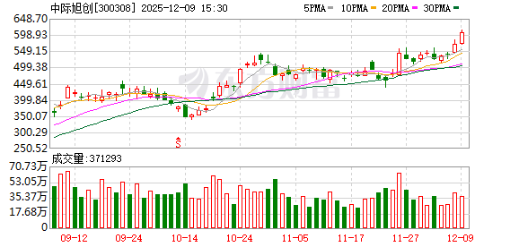 CPO概念12月9日早盘再度走强,早盘收盘时德科立、跃岭股份双双涨停;太辰光、中际旭创、新易盛等龙头股也涨幅靠前。尤其中际旭创,早盘大涨6.94%,股价历史首次突破600元关口,最新市值达6773亿元,排在A股第20位。